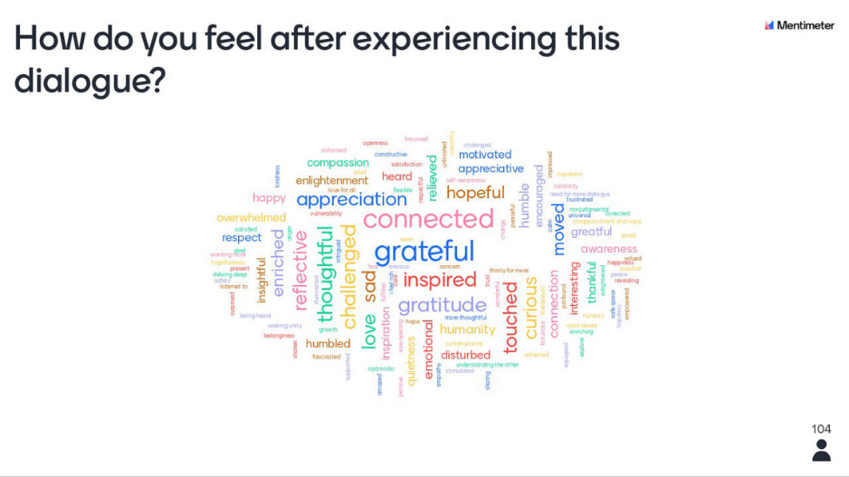 Effective dialogue enables us to understand how our opinions are shaped by our environment, it can build trust and strengthen relationships. The process is challenging as it requires us to suspend our judgments, get honest with ourselves and free ourselves from the need to agree or make decisions. Dr Iryna Brunova-Kalisetska, researcher, trainer and dialogue facilitator, drew attention to the fact that dialogue takes time. Talking about the #BlackLivesMatter context, Matthew Freeman, facilitator and trainer, shared, ‘Often people think that we don’t need to talk, that we need action, but I think that this is a false dichotomy’. Dialogue is a crucial step in taking action, as it can help us to get on the same page.